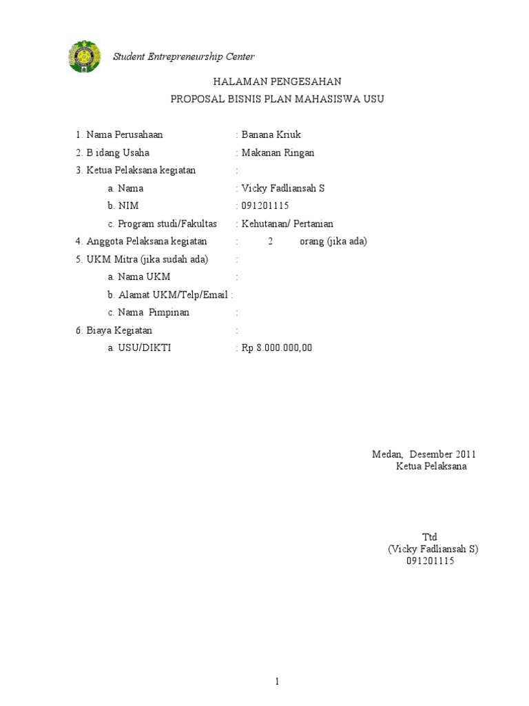 Meningkatkan kualitas produk pisang menjadi keripik pisang membutuhkan dukungan modal yang tidak dapat kami tanggung sendiri oleh sebab itu kami membutuhkan donatur atau investor yang. PROPOSAL USAHA MAKANAN RINGAN RISOL BUAH taufiq abadi 2 years ago business plan contoh bisnis kewirausahaan makalah kewirausahaan terbarumakalah proposal usaha proposal usaha tugas PROPOSAL USAHA MAKANAN RINGAN RISOL BUAH Disusun untuk Memenuhi Tugas Mata Kuliah Kewirausahaan Dosen Pengampu. PROPOSAL BISNIS PLAN MAKANAN RINGAN KECIPIR KATA PENGANTAR.