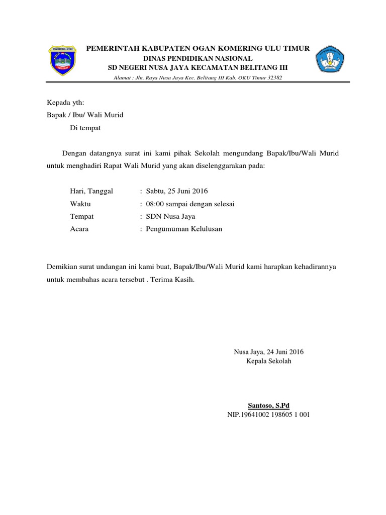 10 Contoh Surat Undangan Rapat Sekolah Perusahaan Rt. 4 Contoh Surat Undangan Orang Tua. Contoh Surat Undangan Wali Murid Yang Benar Terbaru 2018.
