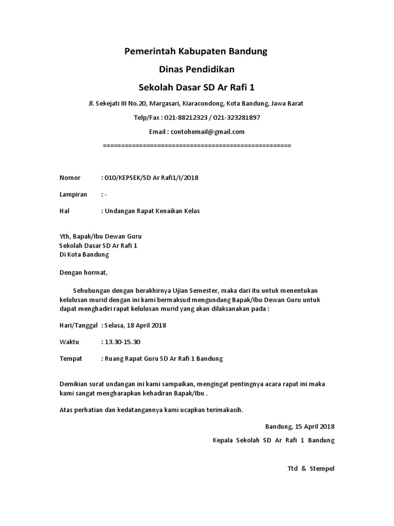 Dengan ini kami mengundang seluruh BapakIbu Guru untuk hadir dalam Rapat Kelulusan Tahun Pelajaan 20192020 yang akan dilaksanakan pada. Membuat Surat Lamaran Kerja. Mohon maaf apabila banyak kesalahan dalam penulisan artikel atau informasi tersebut yang ada kaitannya dengan Undangan.