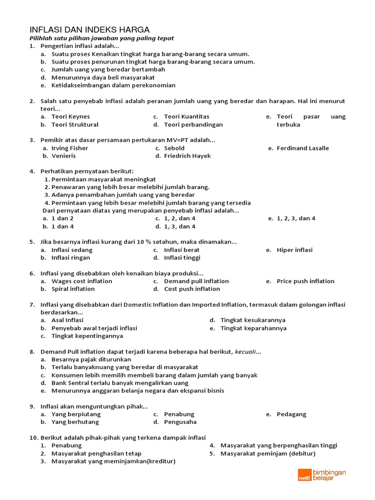 Latihan Soal Indeks Harga Dan Inflasi Kelas 11 Sma